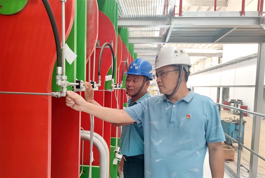 黃翔峰(右一)正在檢查項目