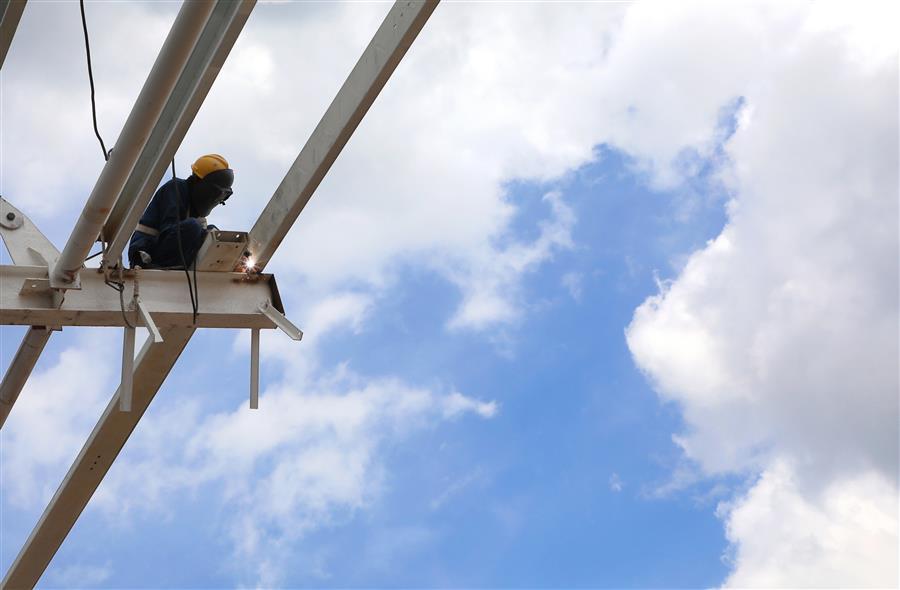 炎炎夏日,擋不住項目推進的步伐。7月20日,由冶建公司承建的柳州鐵路港核心區(qū)(西鵝鐵路物流中心)倉儲配一體庫項目施工現(xiàn)場,皮膚黝黑的覃五偉在工友的配合下,迅速而準確地把一塊塊外立面板材安裝到位,與此同時在該項目現(xiàn)場、不同作業(yè)崗位上的,還有幾十名工人,正在揮汗如雨地工作,大家克服困難、齊心協(xié)力施工,就是為了盡快完成項目的收尾工作,早日交付。