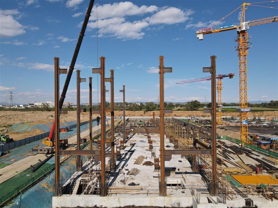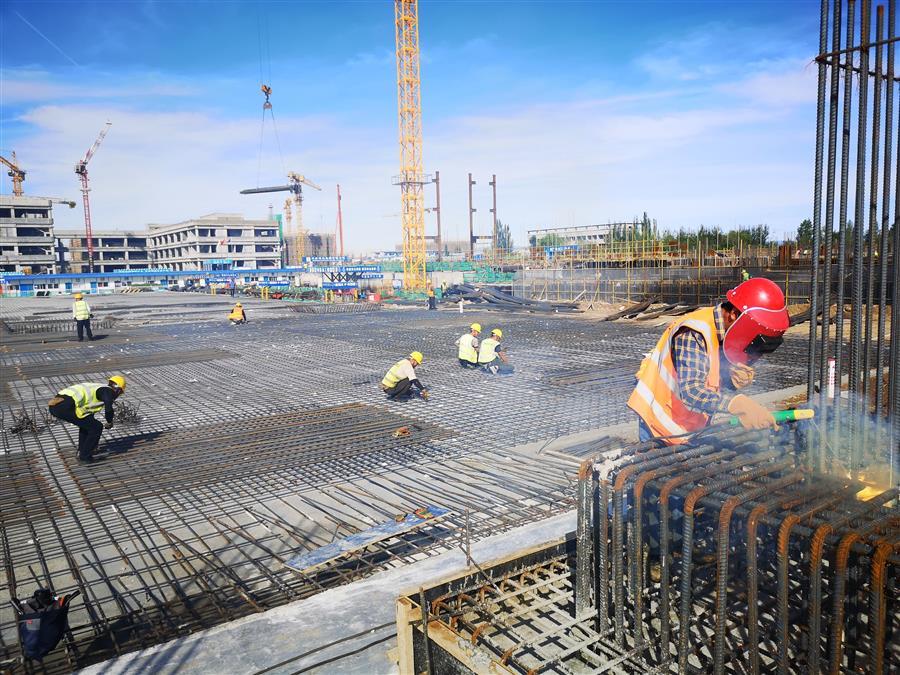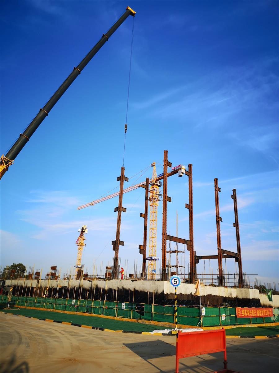 目前,項目正在進行主體施工,施工現場正緊張有序地進行著模板安裝、鋼筋綁扎、水電管線預埋、鋼結構吊裝等工作。