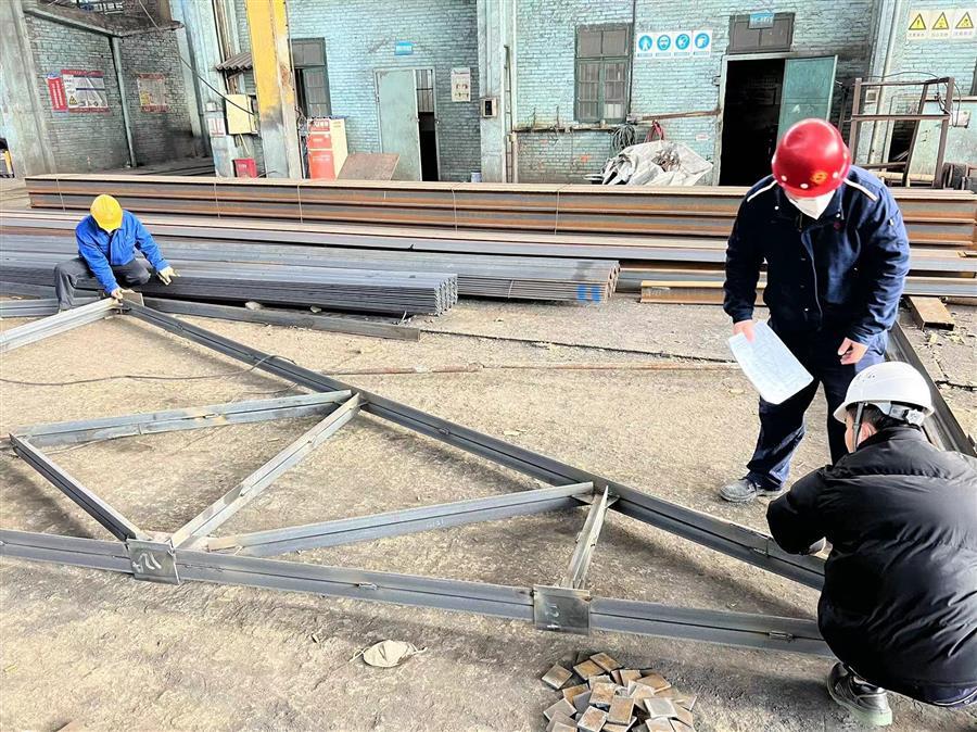 廣西柳鋼環(huán)保公司鋼渣廠1#廠房氣窗及3-11#柱屋面鋼結(jié)構(gòu)與彩瓦更換工程鋼結(jié)構(gòu)預(yù)制加工現(xiàn)場,焊接“火花”不斷,工人作業(yè)有序。據(jù)了解該項目屬于檢修項目,工期緊,需提前加工預(yù)制完后,才能拆除現(xiàn)場舊屋架,現(xiàn)場生產(chǎn)環(huán)境高溫腐蝕嚴(yán)重,為了確保項目施工安全,施工班組每天進場前都要進行安全交底。當(dāng)前,該項目完成5片屋架組隊,2跨天窗主體鋼框架,所有構(gòu)件制作完成,整體已完成年前計劃進度約85%,加工過程中甲方隨機抽檢均合格。