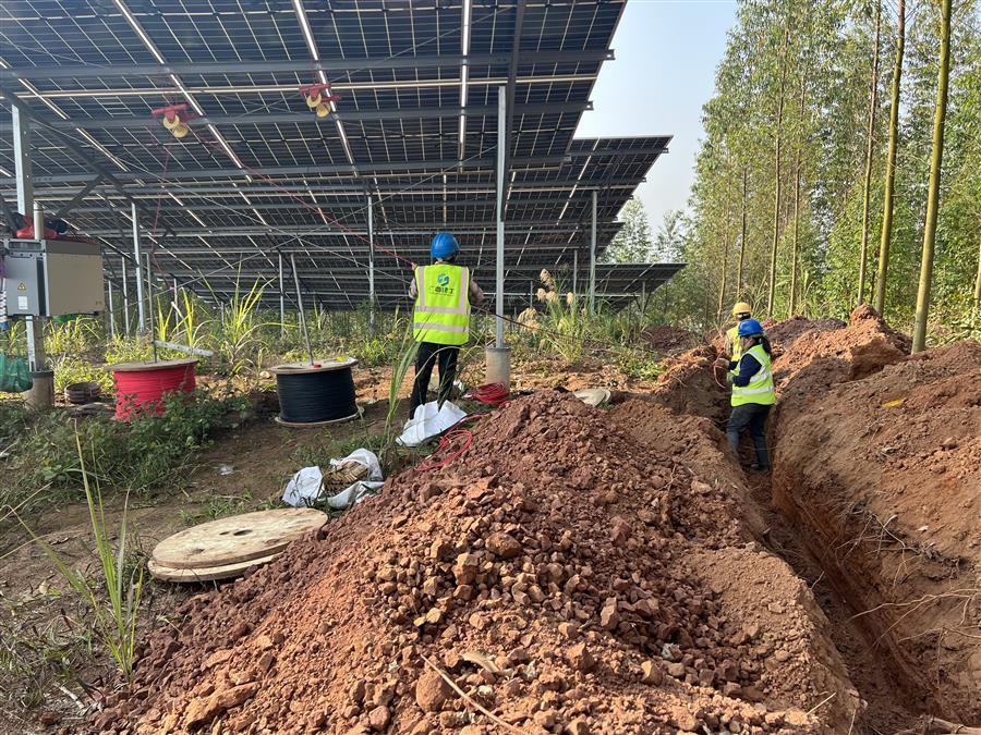 節(jié)后復工復產以來,項目接地網開挖敷設完成1235米,低壓電纜敷設完成1285米,光伏專用電纜敷設完成14760米,圍欄安裝1030米。
