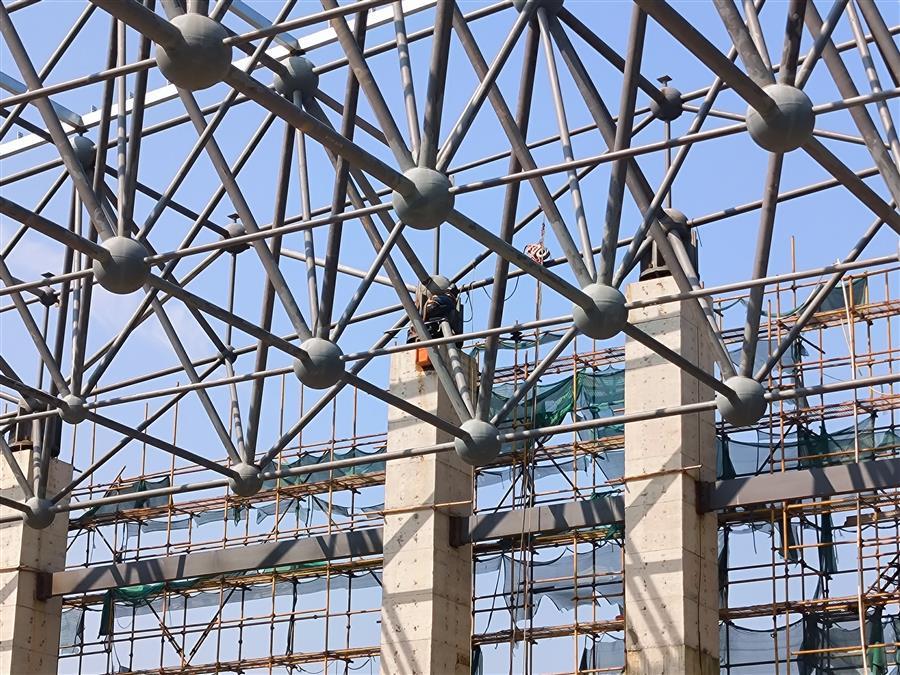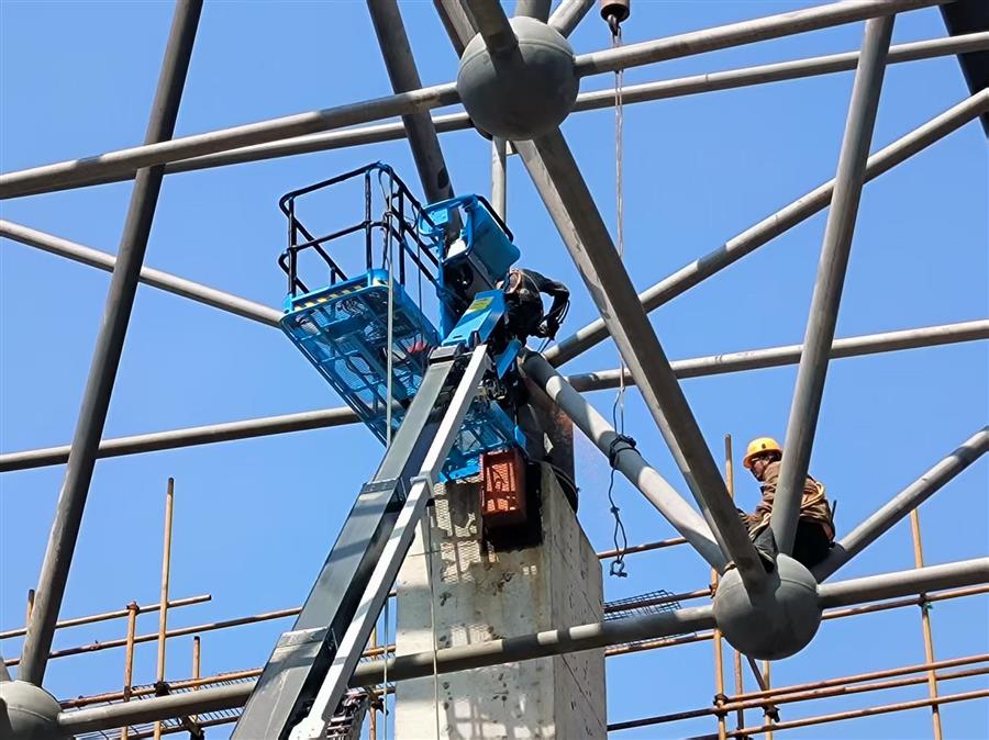 項目部嚴格落實好節(jié)后復(fù)工復(fù)產(chǎn)“六個一”,全面排查網(wǎng)架班組施工安全隱患,對施工設(shè)備、作業(yè)人員、安全防護設(shè)施等進行檢查和培訓(xùn),確保設(shè)備設(shè)施安全可靠后全面復(fù)工。目前,該項目正在進行網(wǎng)架小立柱的安裝和提升架的拆除工作。