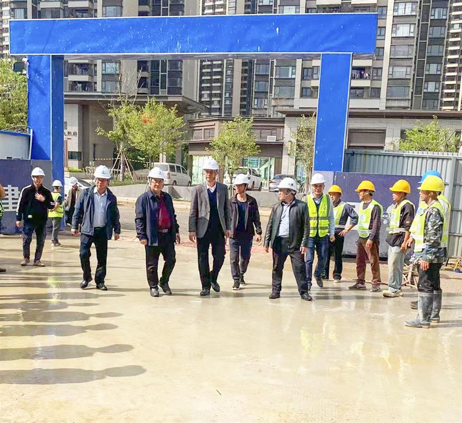 在聽取分公司及項目部的匯報后,何勇深入項目施工現(xiàn)場,認真查看了落地式腳手架、臨時用電、模板支架、安全文明施工等情況,并對項目的建設進度表示肯定。