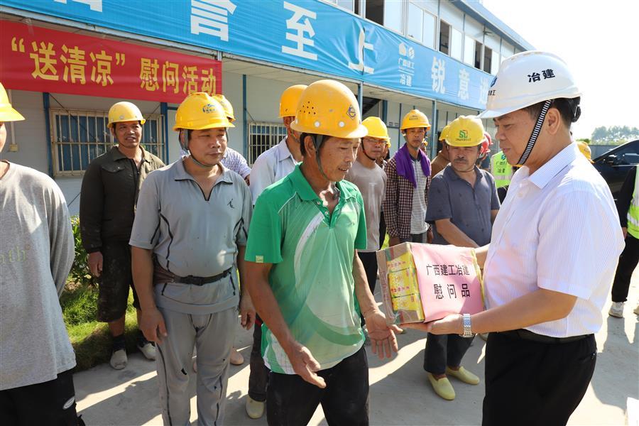8月7日,冶建公司董事長、黨委書記覃振華,總經(jīng)理、黨委副書記蒙勝益分別到壓力容器制造廠、柳州市柳東新區(qū)明德小學(xué)項(xiàng)目開展“送清涼”慰問活動(dòng)。