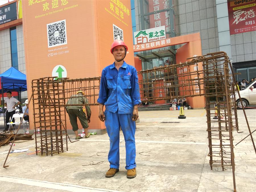 8月31日,在柳州家居建材博覽中心室外廣場(chǎng)上,一群頭戴安全,身著工裝的農(nóng)民工在各自忙碌著,不時(shí)傳來“叮叮叮”鋼筋碰撞聲、“嘩嘩嘩”刨木聲、“咚咚咚”敲磚聲……伴隨著一片熱鬧的聲響,柳州市第四屆農(nóng)民工技能大賽暨柳州市第三屆農(nóng)民工家庭服務(wù)業(yè)大賽火熱舉行。
