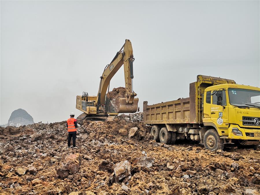 “嘀……”的一聲長(zhǎng)笛聲,挖掘機(jī)剛裝好一輛車的土,提醒司機(jī)出發(fā)。柳江區(qū)新興工業(yè)園柳石路東片區(qū)基礎(chǔ)設(shè)施建設(shè)項(xiàng)目現(xiàn)場(chǎng),挖掘機(jī)、推土機(jī)、壓路機(jī)“各司其職”,對(duì)土地進(jìn)行平整,呈現(xiàn)出一派熱鬧的景象。